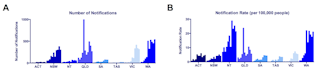 Pero cuando se tiene en cuenta el tamaño de la población, ¿cómo cambia eso? Cuando se observa el número de notificaciones por cada 100.000 personas en la población, las áreas tropicales de Australia (el Territorio del Norte, Australia Occidental y Queensland) son, con mucho, las de mayor riesgo. Eso se debe a que esas áreas son las que tienen más probabilidades de tener la enfermedad, el insecto que propaga la enfermedad y los seres humanos.