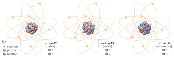 luonnossa esiintyy kolme hiilen isotooppia: hiili – 12, hiili-13 ja hiili-14. Kaikilla kolmella on kuusi protonia, mutta niiden neutroniluvut – 6, 7 ja 8 – eroavat toisistaan. Tämä tarkoittaa, että kaikilla kolmella isotoopilla on eri atomimassat (hiili-14 on raskain), mutta niillä on sama järjestysluku (Z=6).